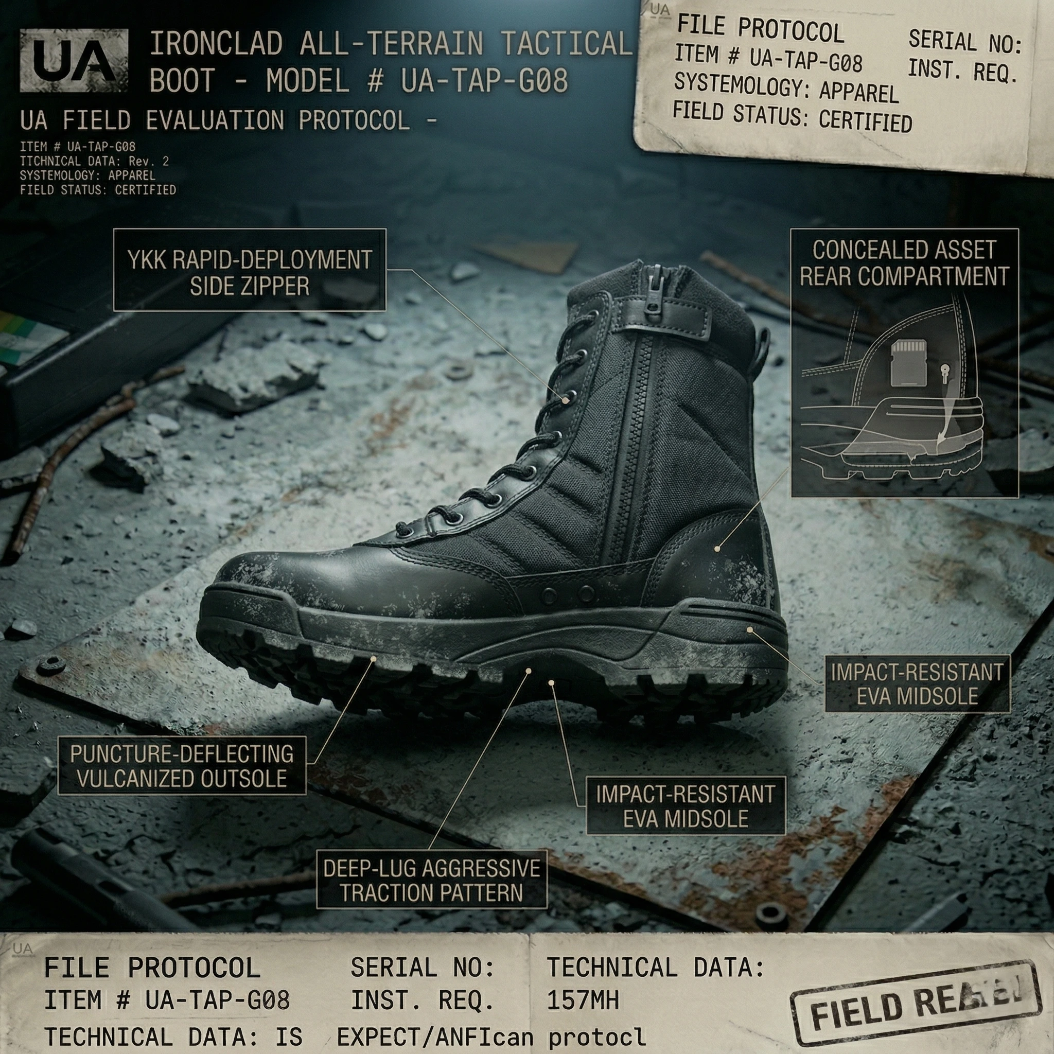 The foundation of every successful extraction or exploration is your footing. Abandoned structures and uncharted environments are littered with unseen hazards—rusted rebar, shattered glass, and slick, degrading concrete. The “Ironclad” All-Terrain Tactical Boot is engineered to crush these obstacles without compromising your mobility.